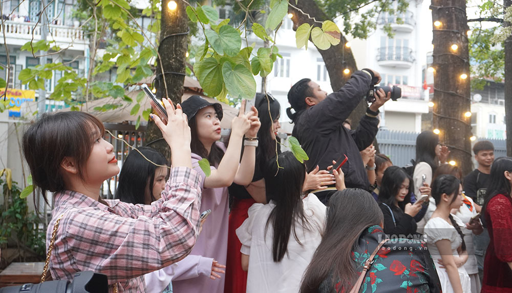 “Biết được hoa sưa ở quán cà phê này đang rất đông người chụp nên tôi phải đến từ sáng sớm. Tuy vậy, khi đến cũng đã có khá nhiều người xếp hàng chờ”, chị Hường nói.