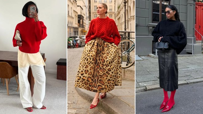 Một chiếc áo len vặn thừng màu đỏ rực rỡ khi kết hợp cùng chân váy họa tiết da báo sẽ tạo nên sự tương phản đầy ấn tượng. Để hoàn thiện vẻ ngoài, một màu son đỏ cùng tông sẽ mang lại diện mạo cổ điển nhưng không kém phần phá cách.
