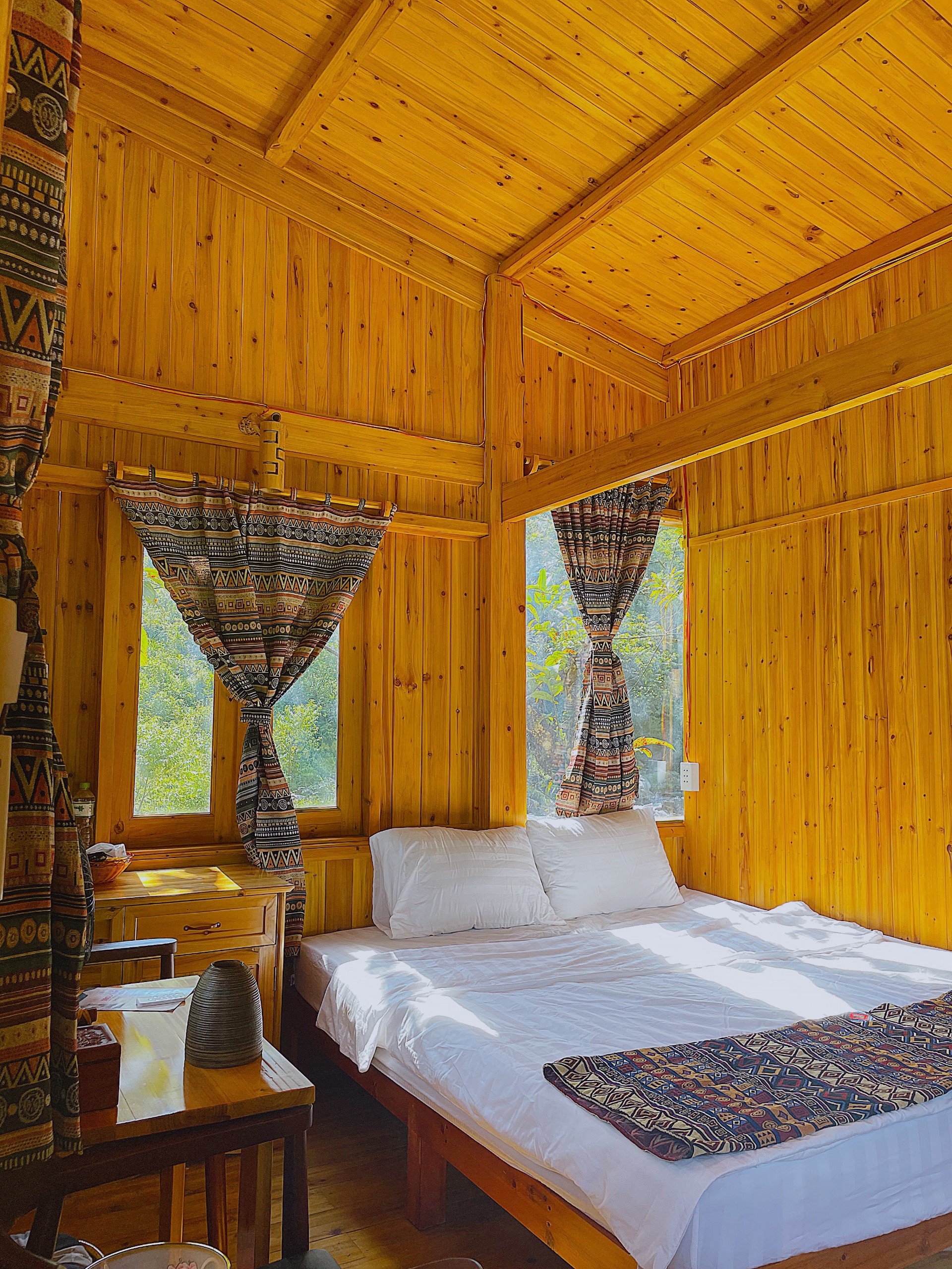 Ngũ Chỉ Sơn Trekking được thiết kế với phong cách ấm áp, mang đậm dấu ấn văn hóa của người dân tộc miền núi. Những bungalow gỗ trên núi được trang bị đầy đủ tiện nghi, tạo ra không gian nghỉ dưỡng yên tĩnh, riêng tư và gần gũi với thiên nhiên. Từ cửa sổ của các bungalow, du khách có thể phóng tầm mắt ngắm nhìn ruộng bậc thang xanh mướt, những ngọn núi trùng điệp và vườn rau tươi tốt. Tất cả như hòa quyện trong làn sương mờ ảo, tạo nên một bức tranh thiên nhiên tuyệt đẹp.