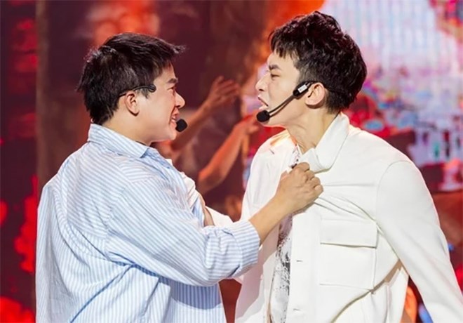 Bùi Công Nam và Kay Trần tại Anh trai vượt ngàn chông gai. Ảnh: Nhà sản xuất