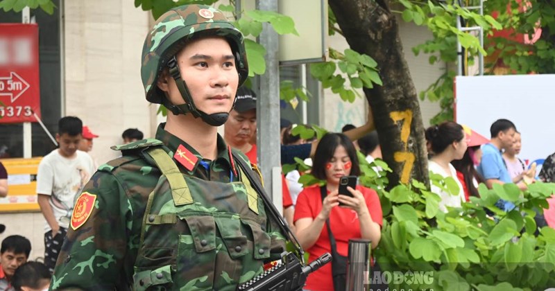 Không chỉ ở trung tâm, trên các tuyến phố dẫn vào Quảng trường Ba Đình, lực lượng công an căng mình điều tiết. Từng tốp chiến sĩ bộ đội phối hợp với công an địa phương giữ gìn an ninh vòng ngoài, vừa điều phối dòng xe, vừa kịp thời hỗ trợ người dân. Nhiều chiến sĩ trực liên tục hơn 6 tiếng ngoài trời, mồ hôi thấm đẫm lưng áo song gương mặt vẫn kiên định, nghiêm trang.