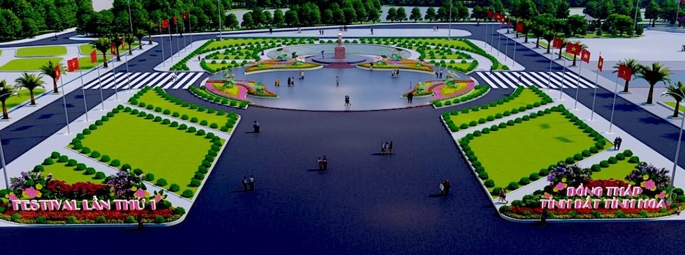 Phối cảnh trang trí khu vực công viên Sa Đéc với rất nhiều hoa kiểng được trang trí bắt mắt. Ảnh: Thanh Thanh