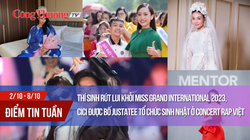 Một thí sinh đột ngột rút lui khỏi Hoa hậu Hòa bình 2023 dù đã đến Hà Nội; Sao nhí Cici Anh Chi được bố JustaTee tổ chức sinh nhật hoành tráng ở Concert Rap Việt; Người mẫu Thanh Hằng chuẩn bị làm lễ cưới với bạn trai vào cuối tháng 10; Học trò Hồ Ngọc Hà bị tẩy chay vì thái độ bề trên, vô lễ; Cậu bé 12 tuổi giành giải Nhất gương mặt MC triển vọng là những tin nóng đáng chú ý trong tuần từ 2/10 - 8/10/2023.