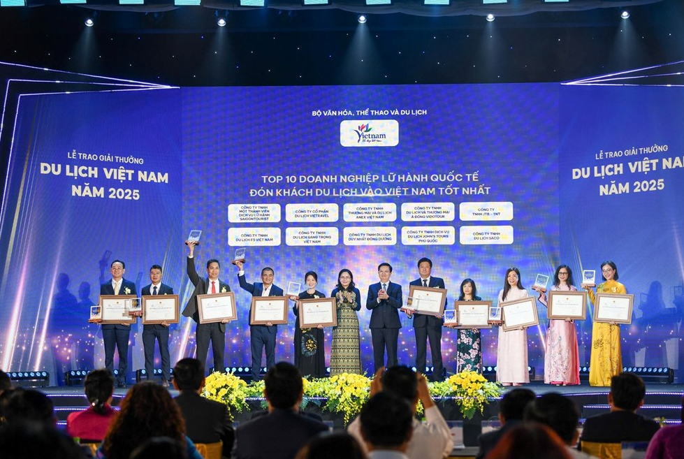 Dưới sự chỉ đạo của Bộ VHTTDL, Cục Quốc gia Việt Nam phối hợp với Báo Văn Hóa vừa tổ chức Lễ trao Giải thưởng Du lịch Việt Nam năm 2025 nhằm quảng bá mạnh mẽ hình ảnh Việt Nam như một điểm đến thân thiện, an toàn, hấp dẫn; khích lệ các doanh nghiệp không ngừng sáng tạo, ứng dụng công nghệ hiện đại, nâng tầm chất lượng sản phẩm và dịch vụ. Ảnh: Trần Huấn