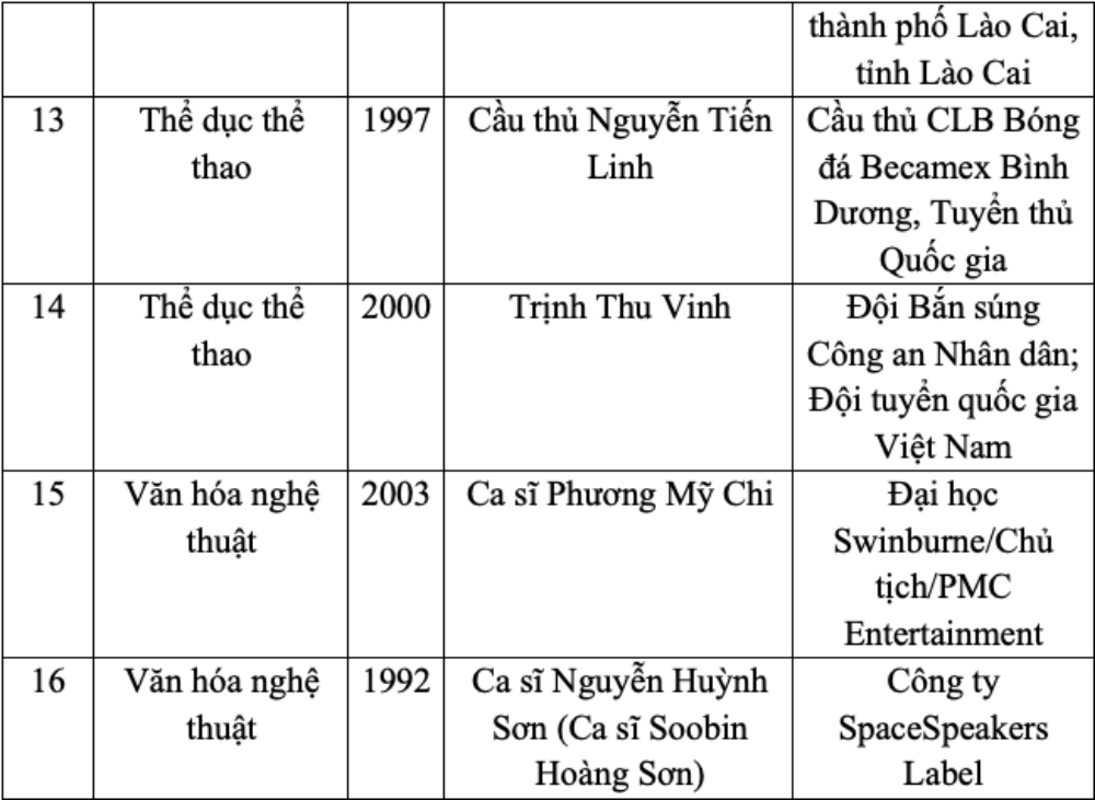 Trong 19 đề cử gương mặt trẻ Việt Nam tiêu biểu năm 2024 có nhiều gương mặt quen thuộc như cầu thủ Nguyễn Tiến Linh, ca sĩ Phương Mỹ Chi.