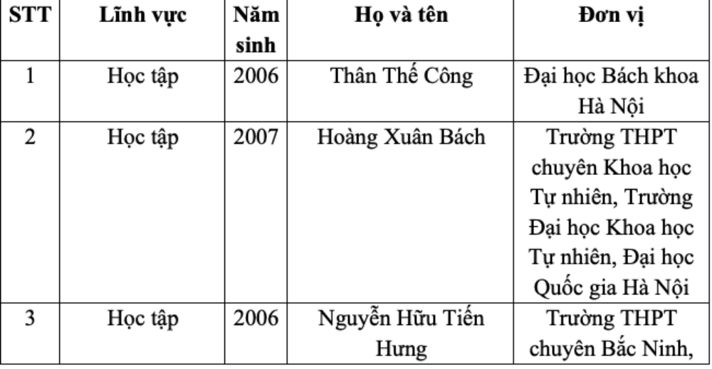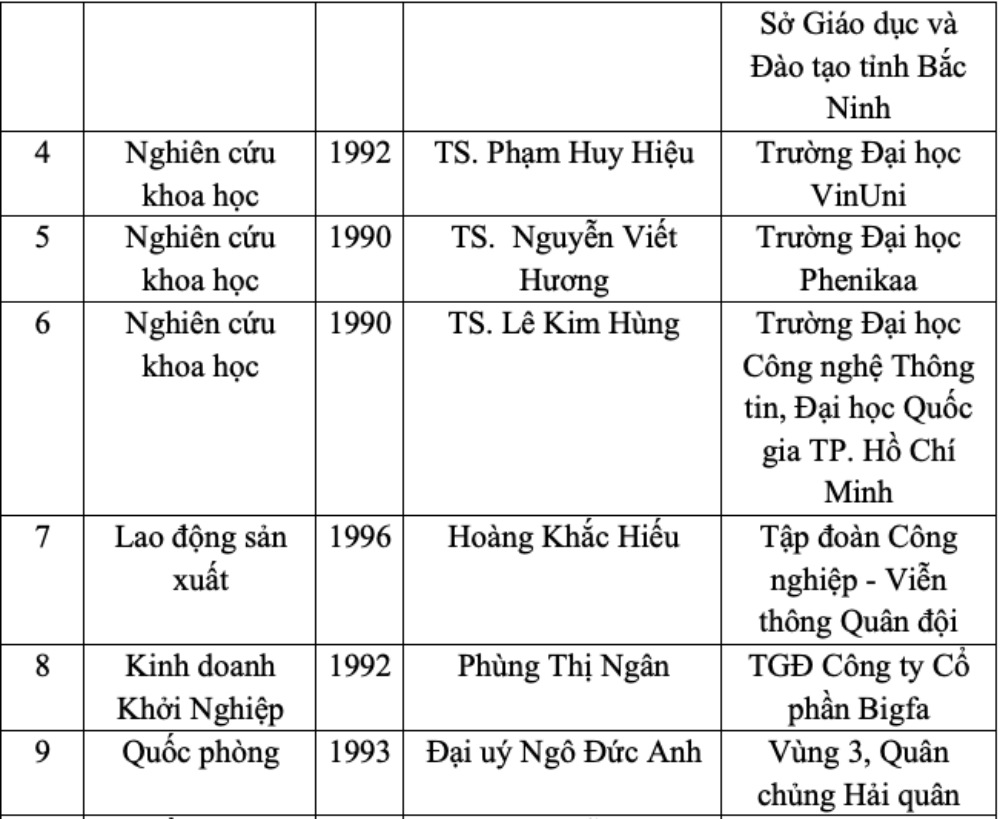 Danh sách 19 đề cử gương mặt trẻ Việt Nam tiêu biểu 2024. Ảnh: Phạm Đông