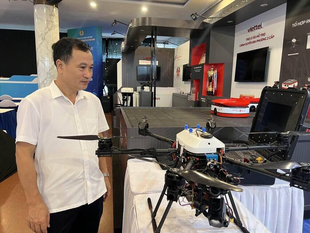 Anh Nguyễn Đình Đại, Phó hiệu trưởng Trường cao đẳng công nghệ Hà Tĩnh tham quan khu trưng bày của các đơn vị bạn tại Ngày hội Lao động sáng tạo 2025. Ảnh: Kiều Vũ