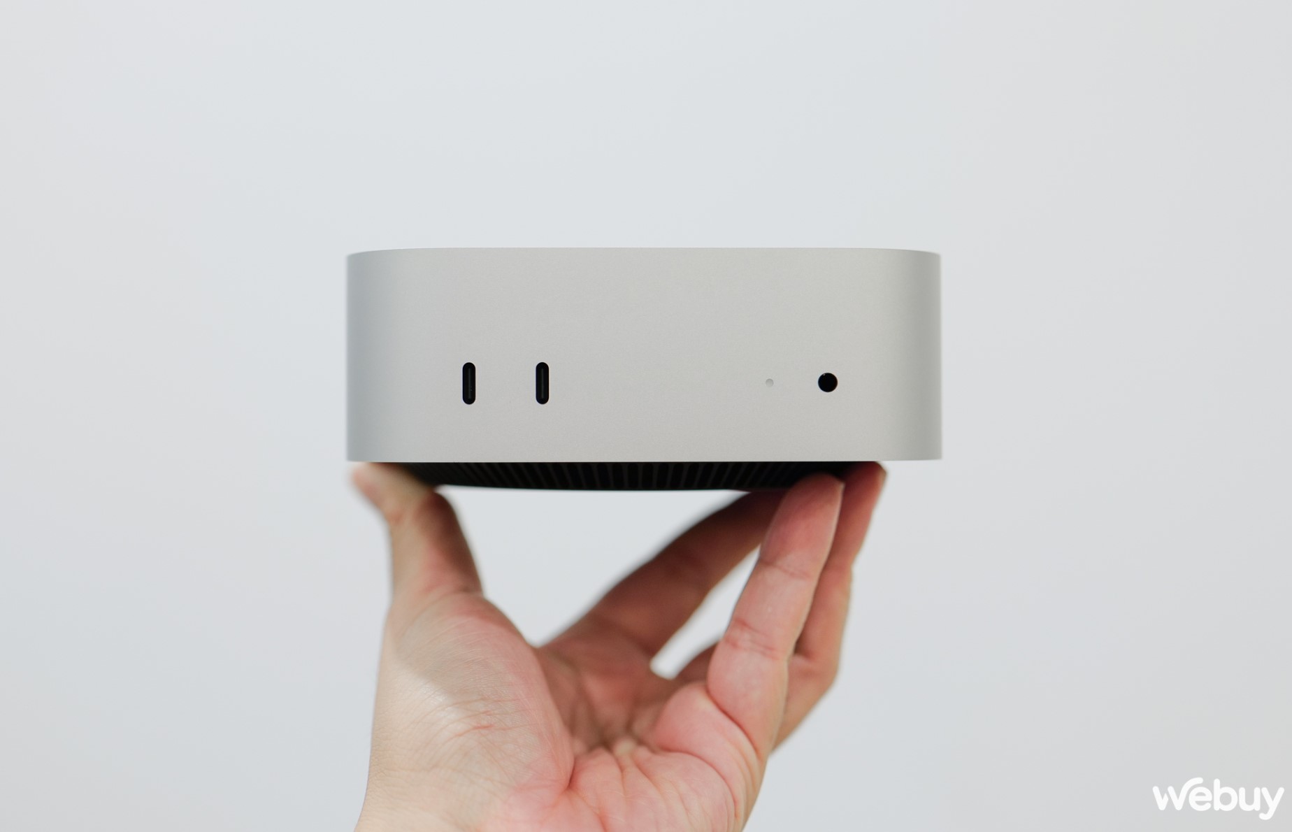Mặt trước máy có 2 cổng USB-C, đèn báo trạng thái và cổng headphone 3,5mm. Mặt sau là nơi chứa các cổng cần thiết, bao gồm cổng nguồn, cổng Ethernet để cắm dây LAN (có thể nâng cấp lên 10Gb), cổng HDMI và 3 cổng USB-C Thunderbolt 5 cho tốc độ truyền tải lên đến 120GB/s (phiên bản M4 là Thunderbolt 4). Hai cạnh hoàn toàn không có cổng kết nối nào. Mặt trên cùng chỉ đơn giản là logo Apple.