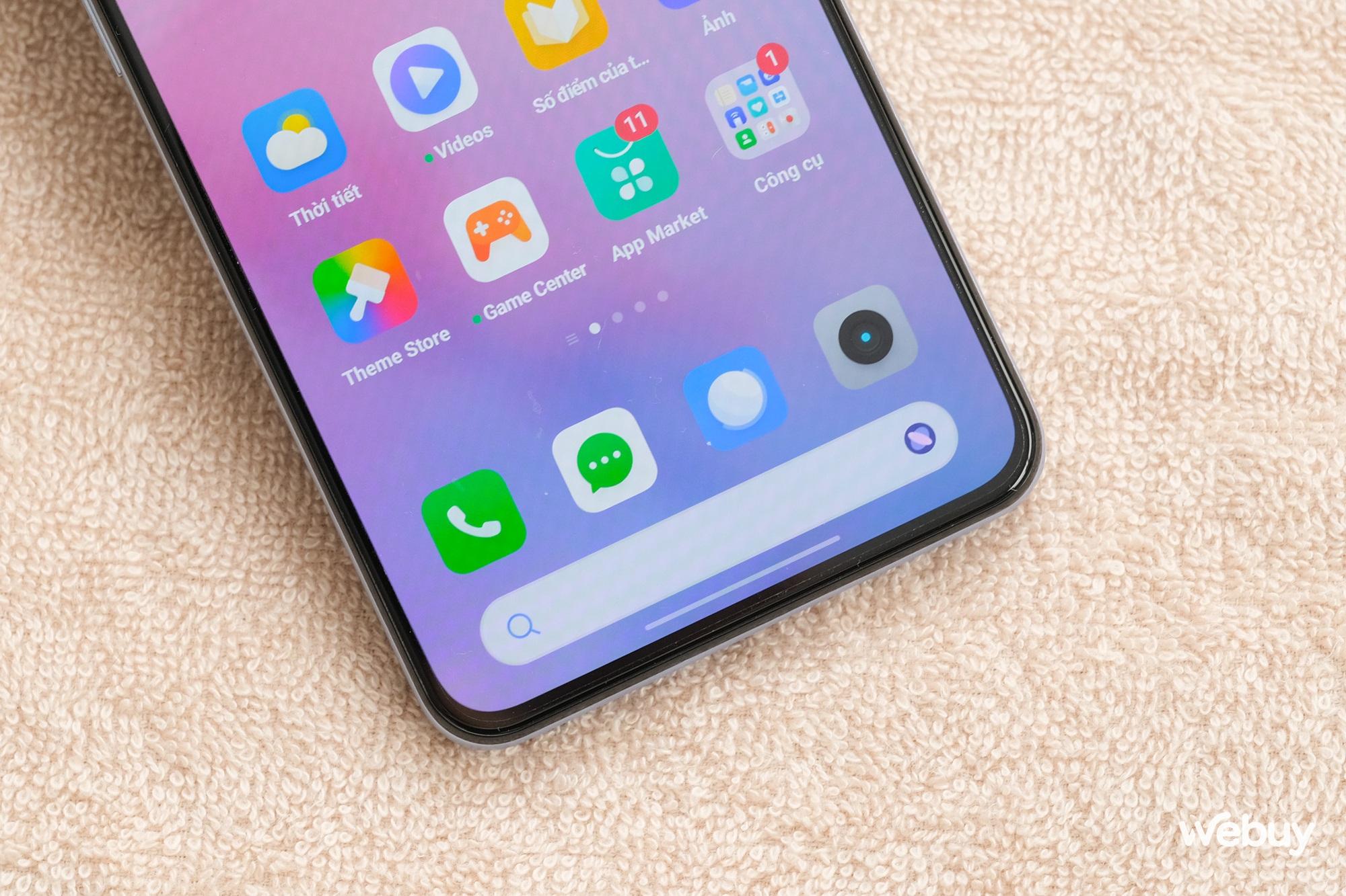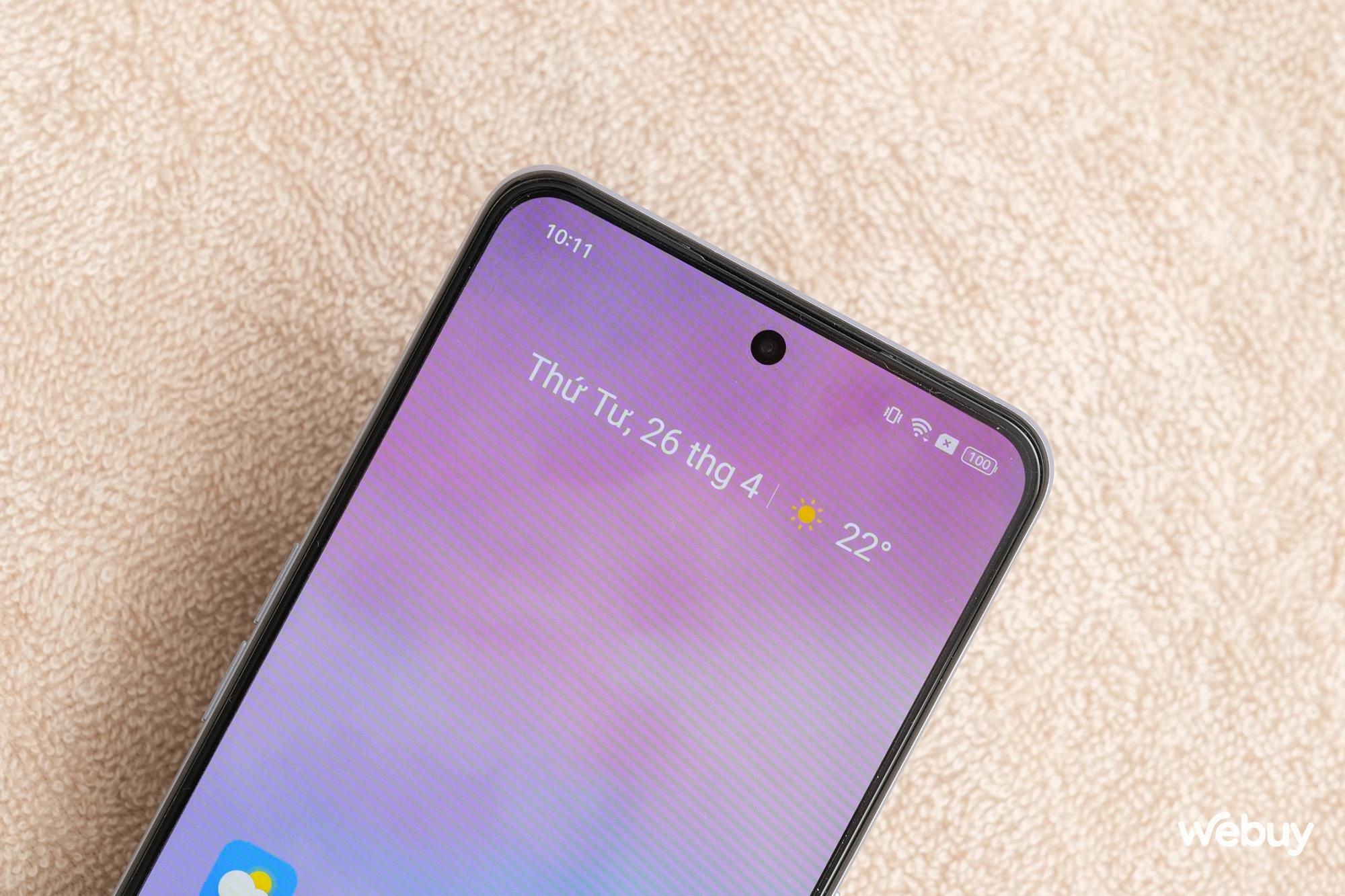 Có thể thấy phần viền màn hình của realme GT Neo5 SE được thiết kế cực kỳ mỏng. Màn hình này sử dụng thiết kế "nốt ruồi" với camera selfie 16MP đặt ở chính giữa cạnh viền trên.