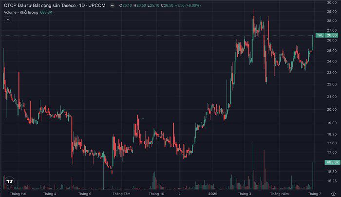 Trước đó, phương án chuyển từ UPCoM sang niêm yết HOSE đã được cổ đông Taseco Land thông qua tại cuộc họp thường niên năm 2025 tổ chức hồi tháng 4. Trên thị trường, cổ phiếu TAL đóng cửa phiên 27/6 là 26.500 đồng/cp, tương ứng vốn hóa đạt hơn 8.264 tỷ đồng.