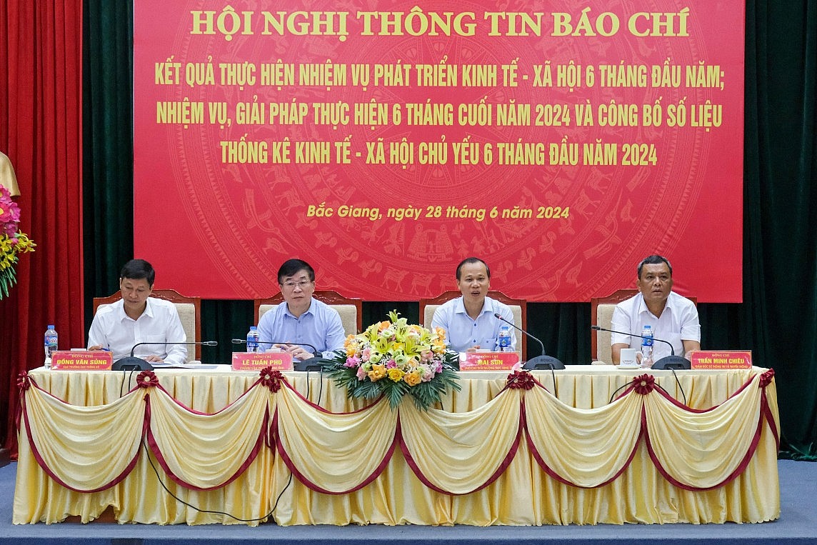 Sáng 28/6, UBND tỉnh Bắc Giang tổ chức họp báo thông tin về kết quả thực hiện nhiệm vụ phát triển kinh tế - xã hội 6 tháng đầu năm, nhiệm vụ, giải pháp thực hiện 6 tháng cuối năm 2024.