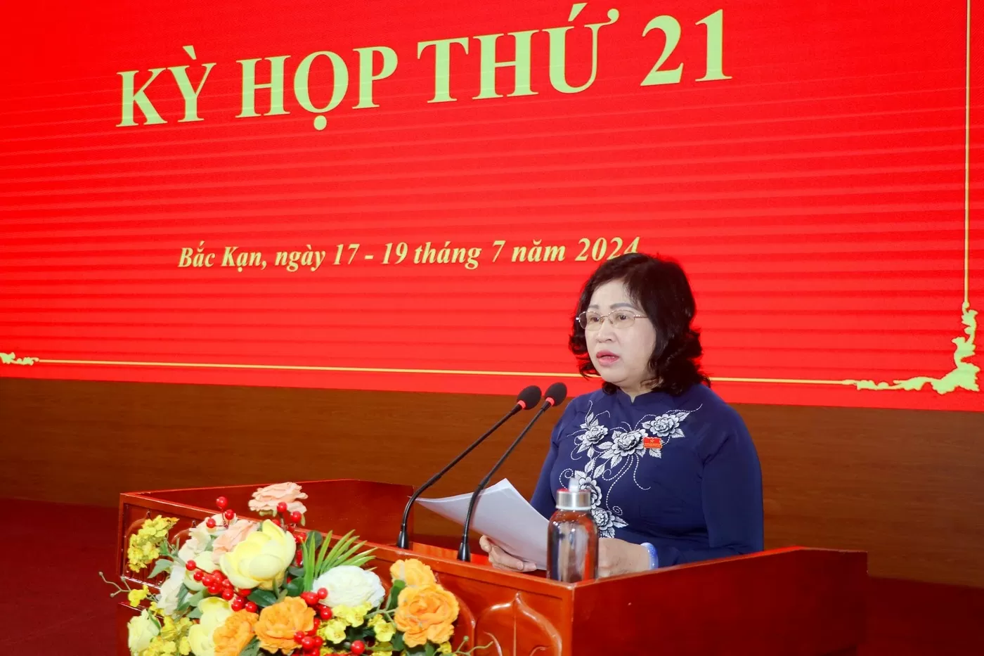 Tại Kỳ họp thứ 21, HĐND tỉnh Bắc Kạn xem xét các báo cáo, thảo luận, quyết định các nghị quyết nhằm cụ thể hóa các quy định, chính sách mới do Trung ương ban hành như: Quy định mức chi thực hiện công tác phổ biến, giáo dục pháp luật; chuẩn tiếp cận pháp luật và hòa giải ở cơ sở. Quy định mức học phí đối với giáo dục mầm non, phổ thông công lập từ năm học 2024 - 2025... Bãi bỏ một số nghị quyết quy phạm pháp luật của HĐND tỉnh. Điều chỉnh kế hoạch vốn đầu tư công năm 2024, kế hoạch đầu tư công trung hạn giai đoạn 2021 - 2025 từ nguồn ngân sách địa phương. Sửa đổi, bổ sung 2 nghị quyết của HĐND tỉnh và một số nội dung quan trọng khác.