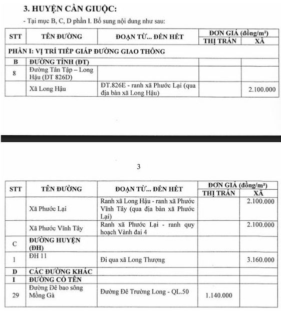 Nghị quyết 10/2024/NQ-HĐND ngày 2.7.2024 sửa đổi Bảng giá đất định kỳ 05 năm (2020-2024) trên địa bàn tỉnh Long An kèm theo Nghị quyết 21/2019/NQ-HĐND, 06/2020/NQ-HĐND và 20/2023/NQ-HĐND. Phạm vi áp dụng các Nghị quyết này là 60 xã phường thuộc tỉnh Long An trước sáp nhập.