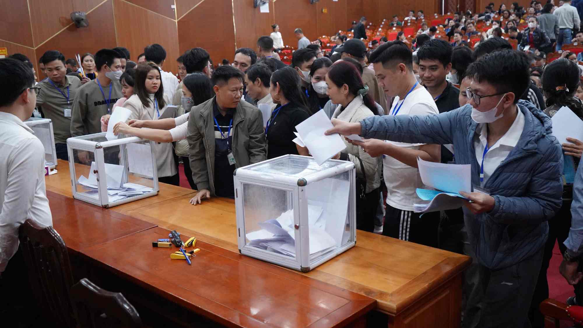 Phiên đấu giá thu hút 319 khách hàng, với 1.368 hồ sơ tham gia đấu giá. Ảnh: Cổng tin thông tin điện tử huyện Thạch Thất