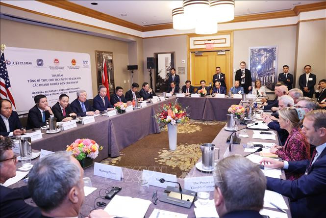 Theo đặc phái viên TTXVN, nhân dịp tham dự các hoạt động của Tuần lễ cấp cao Đại hội đồng Liên hợp quốc khóa 79 và làm việc tại Hoa Kỳ, chiều 23-9 tại New York, Tổng Bí thư, Chủ tịch nước Tô Lâm đã dự buổi tọa đàm doanh nghiệp do Hội đồng Doanh nghiệp Hoa Kỳ - ASEAN (USABC), Phòng Thương mại Hoa Kỳ (USCC) và Hội đồng doanh nghiệp vì sự hiểu biết chung (BCIU) phối hợp với Bộ Kế hoạch và Đầu tư và Đại sứ quán Việt Nam tại Hoa Kỳ tổ chức.