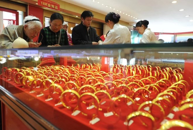 Một cửa hàng vàng ở thành phố Hồ Châu, tỉnh Chiết Giang, Trung Quốc. Ảnh: VCG