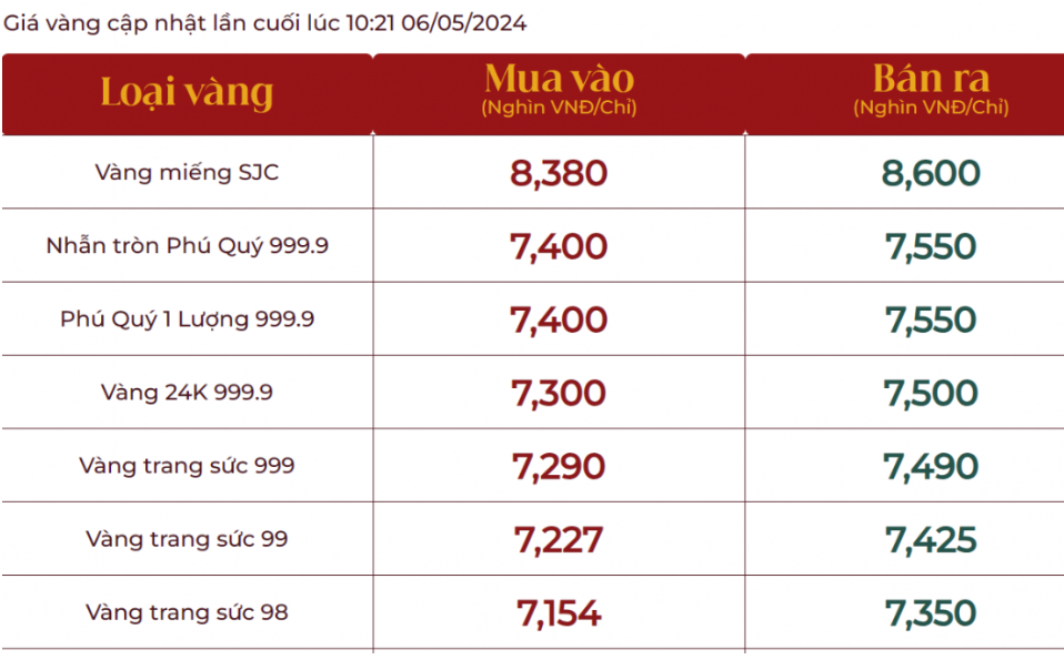 | Giá vàng giao dịch tại Tập đoàn Phú Quý |