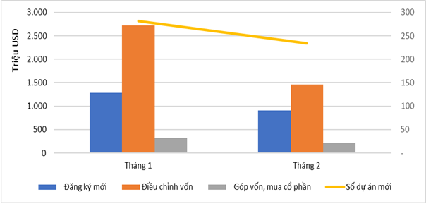 Đầu tư FDI hai tháng đầu năm 2025 theo tháng. (Nguồn: Cục Đầu tư nước ngoài)