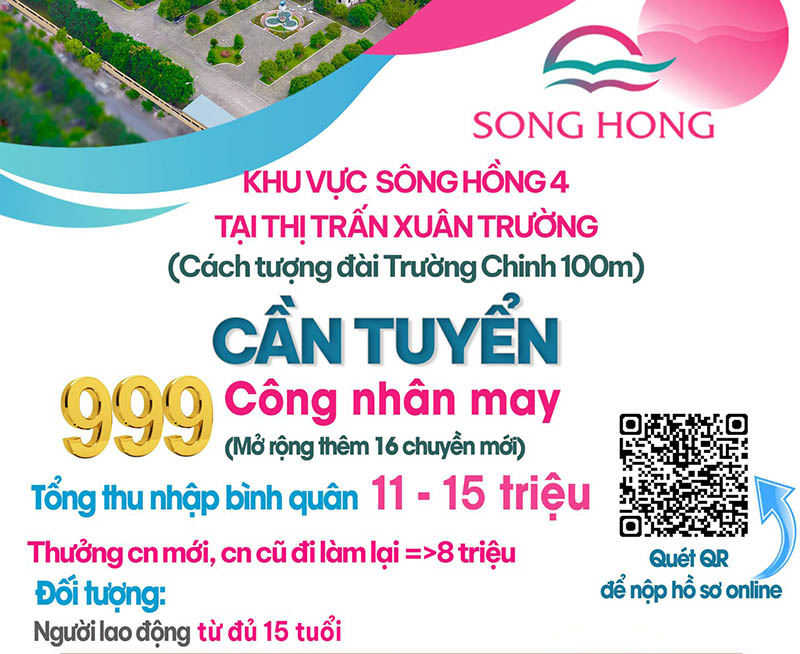 Trên FanPage của Công ty Cổ phần May Sông Hồng - chi nhánh Xuân Trường (Nam Định), các thông tin tuyển dụng được đăng tải thường xuyên. Đáng chú ý, công ty mở rộng đối tượng tuyển dụng, từ đủ 15 tuổi trở lên.