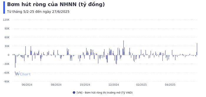 Tổng cộng trong tuần qua (từ 23/6-27/6), NHNN đã bơm ròng 39.858 tỷ đồng. (Nguồn: Wichart)