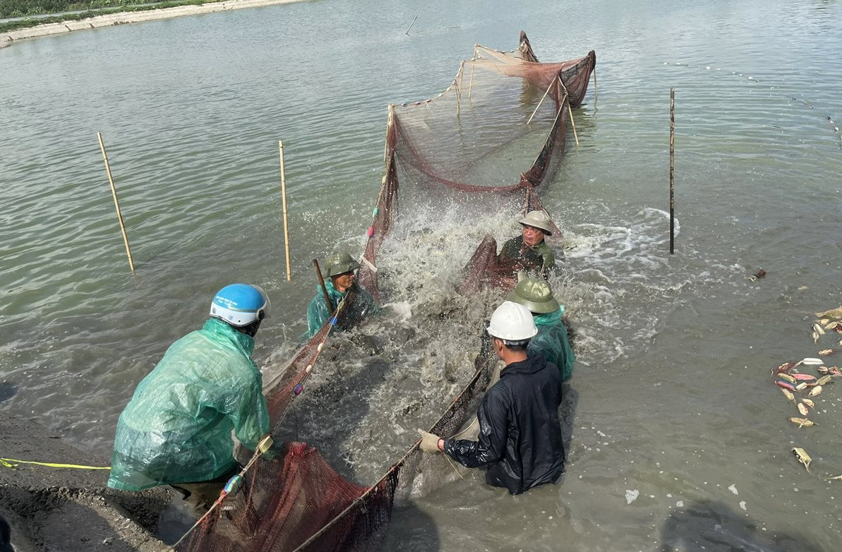 Thu hoạch thủy sản tại xã Phú Túc (huyện Phú Xuyên). Ảnh: Hương Giang