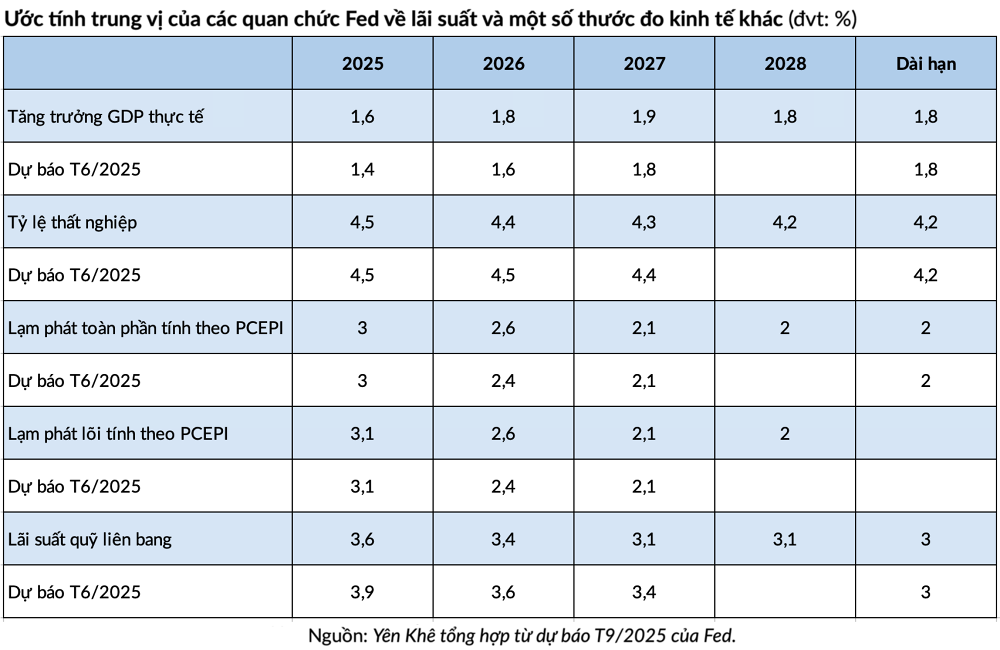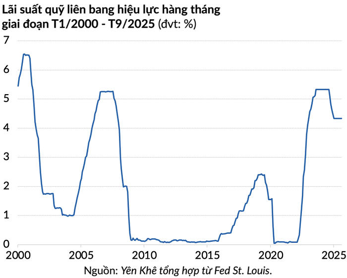 Vào tháng 9, Ủy ban Thị trường Mở Liên bang (FOMC, cơ quan hoạch định chính sách của Fed) đã hạ lãi suất 25 điểm cơ bản (bps) xuống phạm vi 4 - 4,25%. Đây là lần giảm lãi suất đầu tiên của FOMC kể từ tháng 12 năm ngoái.