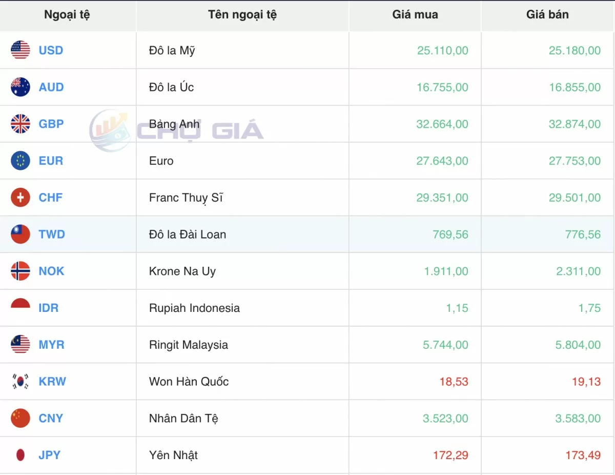 Ngân hàng | Mua | Bán | Mua | Bán |