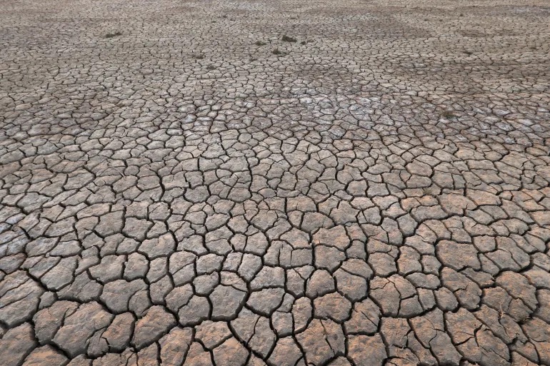 Dư lượng muối được nhìn thấy trên vùng đất nông nghiệp khô cằn ở tỉnh Muthanna, Iraq. Ảnh: Reuters