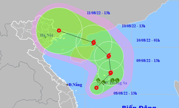 Theo Trung tâm Dự báo Khí tượng Thủy văn Quốc gia, vào 1 giờ ngày 9/8 , vị trí tâm áp thấp nhiệt đới ở vào khoảng 15,9 độ Vĩ Bắc; 111,8 độ Kinh Đông, trên khu vực phía Tây Nam quần đảo Hoàng Sa. Sức gió mạnh nhất vùng gần tâm áp thấp nhiệt đới mạnh cấp 6 (39-49km/giờ), giật cấp 8 . Bán kính gió mạnh cấp 6, giật cấp 8 khoảng 80km tính từ tâm áp thấp nhiệt đới.