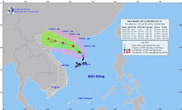 Theo Trung tâm Dự báo Khí tượng Thủy văn Quốc gia, vào 4 giờ ngày 10/8, vị trí tâm bão ở vào khoảng 19,0 độ Vĩ Bắc; 112,0 độ Kinh Đông, cách đảo Hải Nam (Trung Quốc) khoảng 160km về phía Đông.