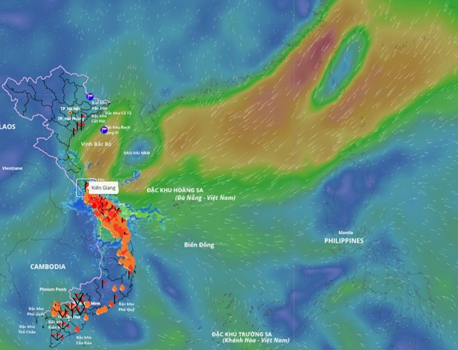 Không khí lạnh tiếp tục gây thời tiết bất lợi trên một số vùng biển. Nguồn: Hệ thống Giám sát thiên tai Việt Nam