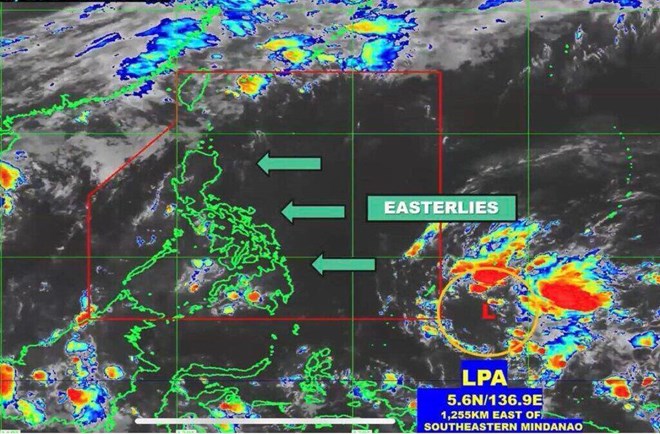 Dự báo bão mới nhất của Cơ quan Thiên văn, Địa vật lý và Khí quyển Philippines (PAGASA) cho biết, cơ quan này đang theo dõi một vùng áp thấp (LPA) ở phía đông Mindanao, Philippines.