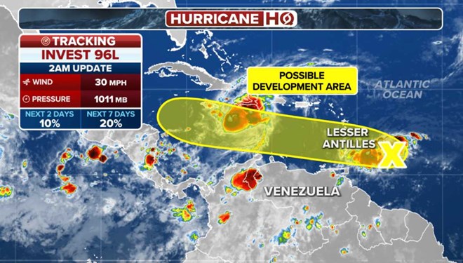 Theo các nhà dự báo, một trong những vùng nhiễu động được gọi là Invest 96L, hiện nằm cách Quần đảo Windward khoảng 1.600km về phía đông đông nam.