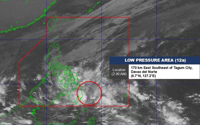 Dự báo bão của Cục Quản lý Thiên văn, Địa vật lý và Khí quyển Philippines cho hay, vào hồi 3h ngày 17.12 theo giờ địa phương, vị trí tâm áp thấp (12a) ở vào khoảng 6,8 độ vĩ bắc, 127,1 độ kinh đông, cách Thành phố Tagum, Davao del Norte 155 km về phía đông nam. Áp thấp có khả năng cao mạnh lên thành áp thấp nhiệt đới trong 24 giờ tới.