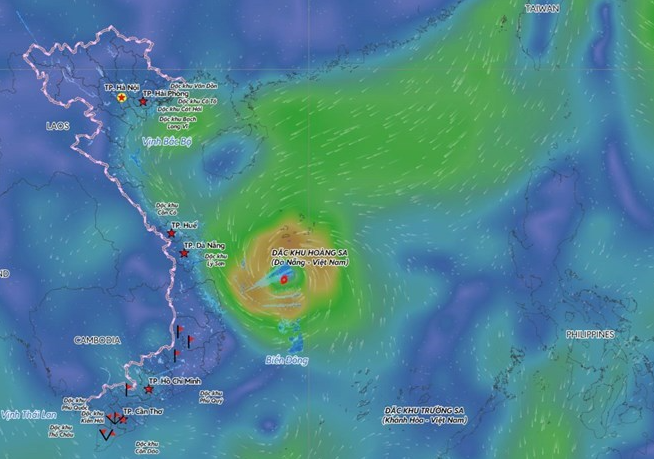 Bão số 15 di chuyển chậm theo hướng Tây, dự báo suy yếu dần khi tiến vào khu vực Gia Lai - Khánh Hòa. Ảnh: Hệ thống Giám sát thiên tai Việt Nam