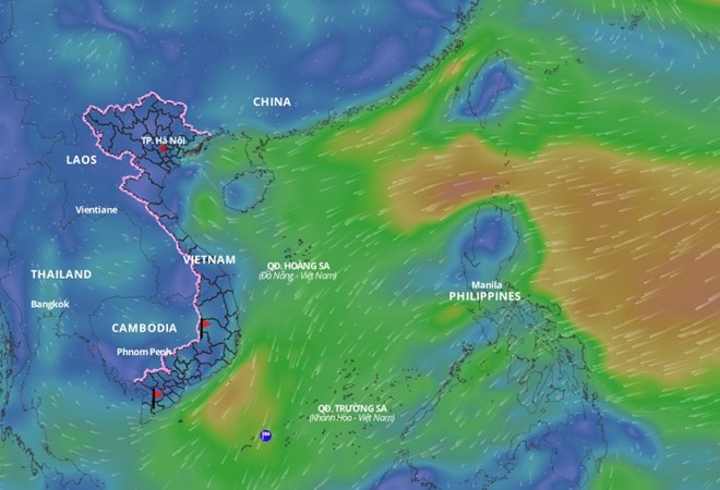 Vùng biển từ Bình Thuận đến Cà Mau, vùng biển phía đông của khu vực Nam Biển Đông (bao gồm vùng biển phía đông quần đảo Trường Sa) đêm 7.2, dự báo có gió đông bắc mạnh cấp 6, giật cấp 7 - 8; biển động; sóng biển cao 4 - 6m.
