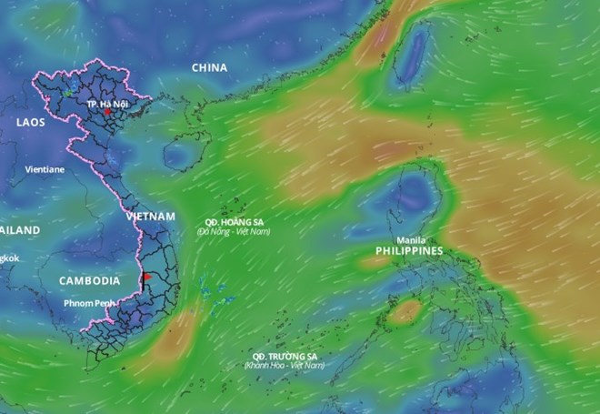 Dự báo không khí lạnh sắp tác động đến thời tiết một số vùng biển thuộc Biển Đông. Trên đây là hình ảnh lớp hướng gió trên biển cập nhật hồi 10h30 ngày 20.2. Ảnh: Hệ thống Giám sát thiên tai Việt Nam