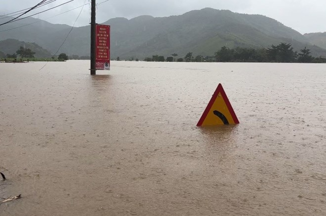 - Trên sông Thu Bồn (thành phố Đà Nẵng) tại trạm Nông Sơn là 17,08 m, cao hơn mức báo động 3 là 2,08 m; tại trạm Câu Lâu là 5,34 m, cao hơn mức báo động 3 là 1,34 m.