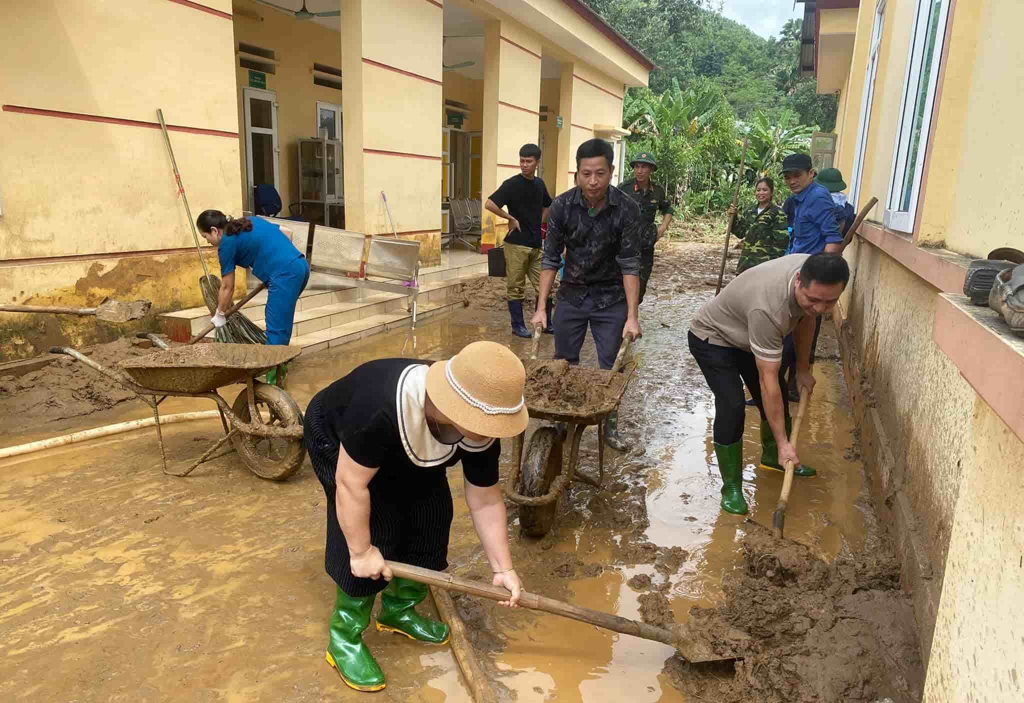 Tại đây, người dân cùng lực lượng chức năng đã nỗ lực dọn dẹp, khắc phục, cố gắng vớt vát lại những tài sản còn lại sau cơn lũ dữ...