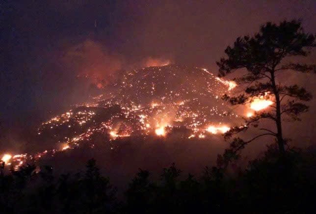 Một đám cháy tại huyện Bình Liêu xảy ra vào đêm 12/4. Ảnh: Xuân Hoa.