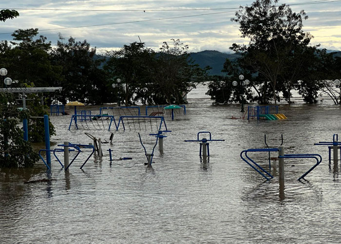 Tại phường Ayun Pa, khu vực cầu và công viên Bến Mộng bị ngập nặng, chỉ còn cách mốc lịch sử năm 2009 khoảng 20 cm.