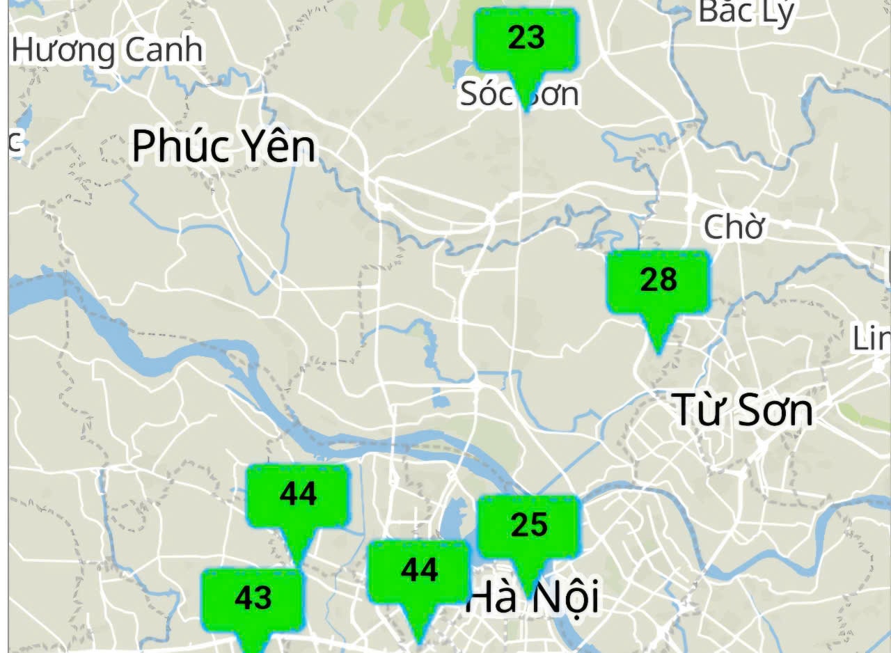 Cụ thể, số liệu quan trắc đăng trên trang moitruongthudo.vn của Sở Tài nguyên và Môi trường Hà Nội cho thấy, có 5 khu vực chất lượng không khí ở ngưỡng tốt, gồm: Xã Vân Hà (huyện Đông Anh), chỉ số AQI là 25, thị trấn Sóc Sơn (huyện Sóc Sơn), chỉ số AQI là 28; xã An Khánh (huyện Hoài Đức) là 43; phường Minh Khai (quận Bắc Từ Liêm) và số 50 Đào Duy Từ (quận Hoàn Kiếm) ở mức 44. Duy nhất khu vực thị trấn Xuân Mai (huyện Chương Mỹ) chất lượng không khí ở mức trung bình, chỉ số AQI là 60.