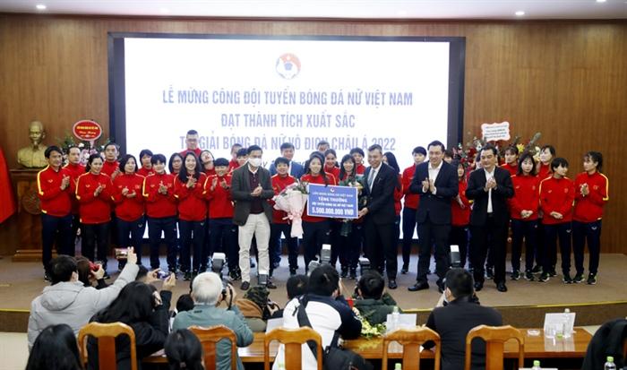 Tại lễ mừng công, UBND TP Hà Nội đã tặng thưởng đội tuyển nữ Việt Nam 1 tỷ đồng; Liên đoàn Bóng đá Việt Nam trao thưởng cho thầy trò huấn luyện viên Mai Đức Chung 5,5 tỷ đồng. Ngoài ra, Công ty cổ phần Honda Việt Nam tặng 23 cầu thủ đội tuyển nữ Việt Nam, mỗi cầu thủ một chiếc xe máy SH Mode. Công ty cổ phần Acecook Việt Nam tặng thưởng đội tuyển nữ Việt Nam 500 triệu đồng và 1 năm sử dụng sản phẩm mì tôm miễn phí.