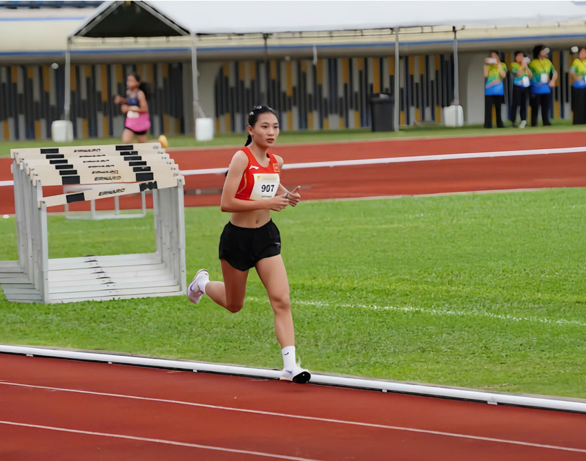 VĐV Triệu Thị Bình giành huy chương Vàng nội dung chạy 3.000 m tại Đại hội Thể thao học sinh Đông Nam Á năm 2025. Ảnh: N.H