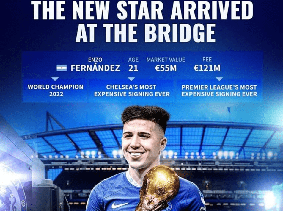 Với mức phí chuyển nhượng 121 triệu euro, Enzo Fernandes đã chính thức phá vỡ kỷ lục chuyển nhượng của Ngoại hạng Anh khi trở thành cầu thủ đắt giá nhất lịch sử.