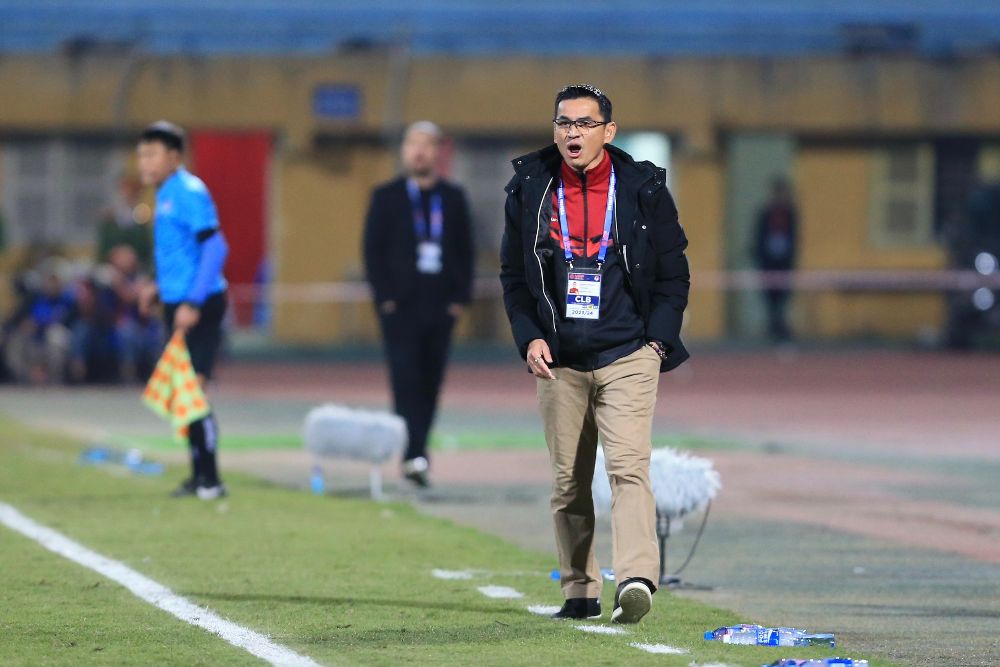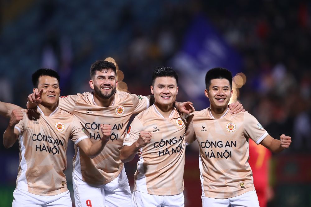Kết quả này giúp Công an Hà Nội vươn lên xếp thứ nhì bảng xếp hạng, cùng 21 điểm với chính Thanh Hóa nhưng hơn về hiệu số. Đây cũng là chiến thắng thứ 3 liên tiếp của huấn luyện viên Kiatisak cùng đội đương kim vô địch. Ảnh: Minh Dân