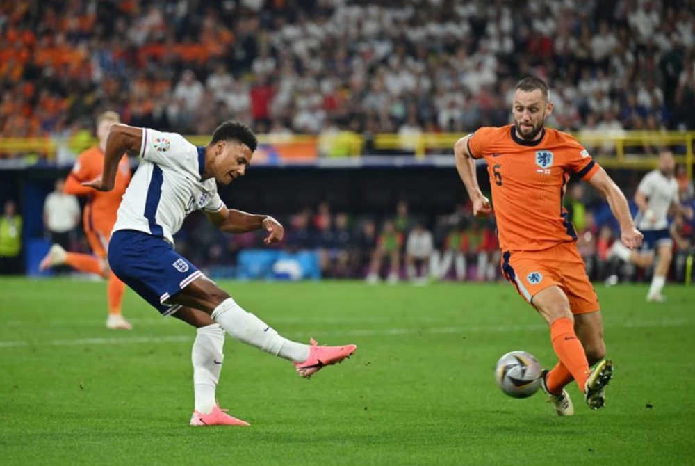 Ollie Watkins với cú dứt điểm quyết đoán, ấn định tỉ số 2-1 cho tuyển Anh trước Hà Lan. Ảnh: UEFA