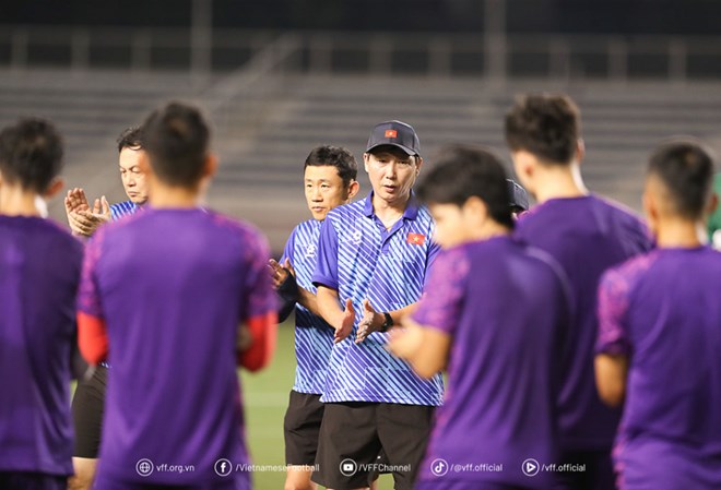 Huấn luyện viên Kim Sang-sik quyết tâm thắng Philippines. Ảnh: VFF