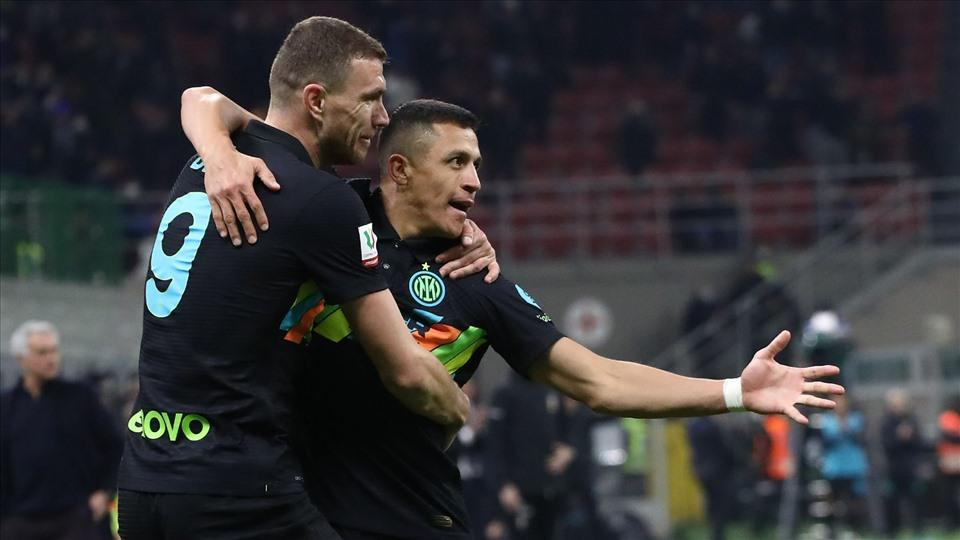2 bàn thắng của Edin Dzeko và Alexis Sanchez giúp Inter vượt qua AS Roma để giành vé vào bán kết Cúp Quốc gia Italia. Ảnh: Serie A