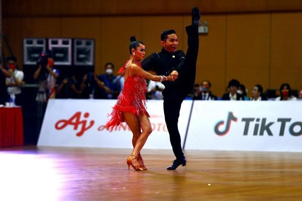 Chiều 15/5, khán phòng Nhà thi đấu Long Biên (phường Việt Hưng, quận Long Biên, Hà Nội) vỡ òa trong niềm vui khi Đội tuyển khiêu vũ thể thao Việt Nam đã mang về 5 huy chương Vàng và 1 huy chương Bạc trong 6 nội dung thi đấu. Đây là thành công lớn của các vận động viên khiêu vũ thể thao Việt Nam trong ngày thi đấu đầu tiên này.